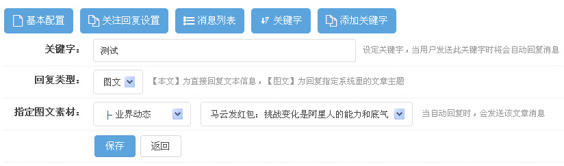 四、設(shè)置成功后,進入微信公眾號中,輸入您設(shè)置的關(guān)鍵詞即顯示出設(shè)置的信息