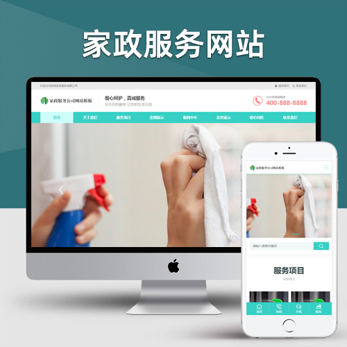 (自適應手機端)家政保潔pbootcms網站模板 家政公司網站源碼下載