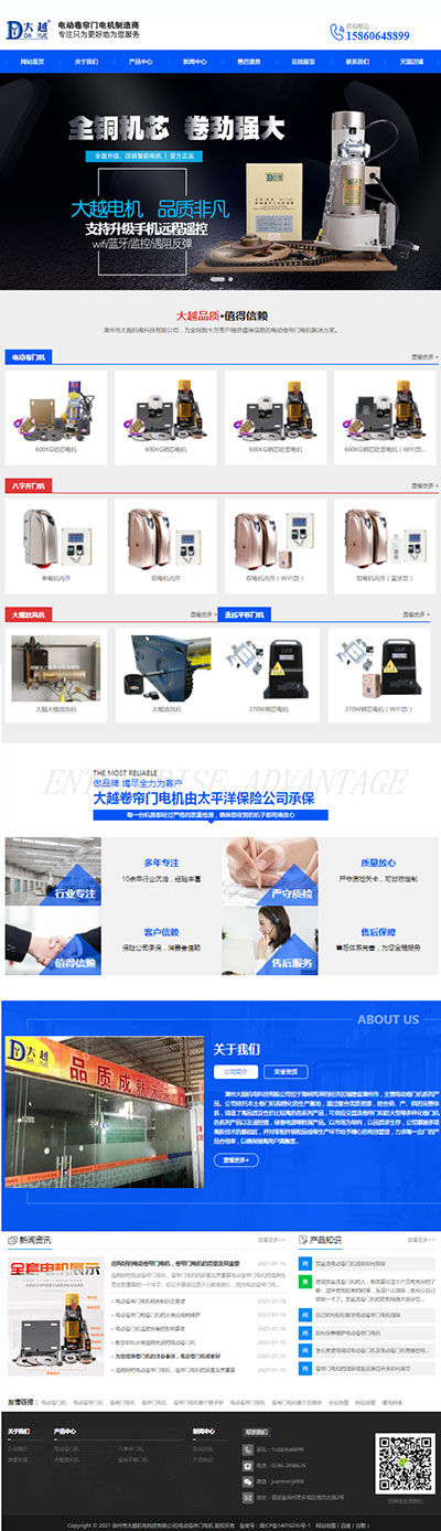 漳州市大越機電科技有限公司成立于2014年3月,位于電動卷門機生產基地——福建省漳州市。本公司專業開發生產電動卷門機、八字平開門機、直線平移門機、溫室大棚放風機,是一家研發,生產,銷售為一體的成熟智能供貨商。先后獲得福建省質量技術監督局連續兩年產品抽檢合格標準,順利通過ISO9001國際質量體系認證,AAA級企業信用認證,以及國際國內多項質量認證,承保于太平洋保險公司。線上平臺:淘寶、天貓、阿里、京東已經做到銷量領先,線下已經走出國門,產品遠銷南美洲、東南亞、澳洲等地區。