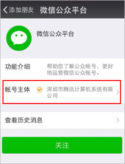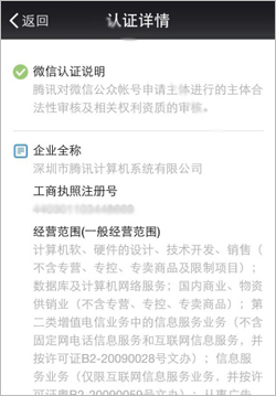 2、微信認證后,用戶將在微信中看到微信認證特有的標識。
