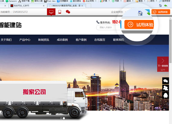 4.我以【CMS0015272】這套模板進行演示,點擊【試用體驗】