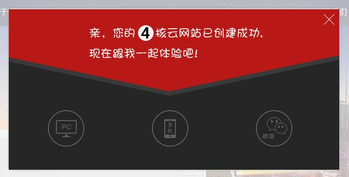 8.出現(xiàn)該界面的時候,表示您已經成功創(chuàng)建試用站,現(xiàn)在您可以點擊【PC】、【手機】、【微信】這些按鈕進行預覽